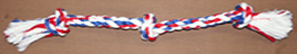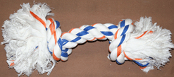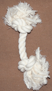 Rope toy. Approximately 8.5" long x 3/4" rope, knots are approximately 2.25"
